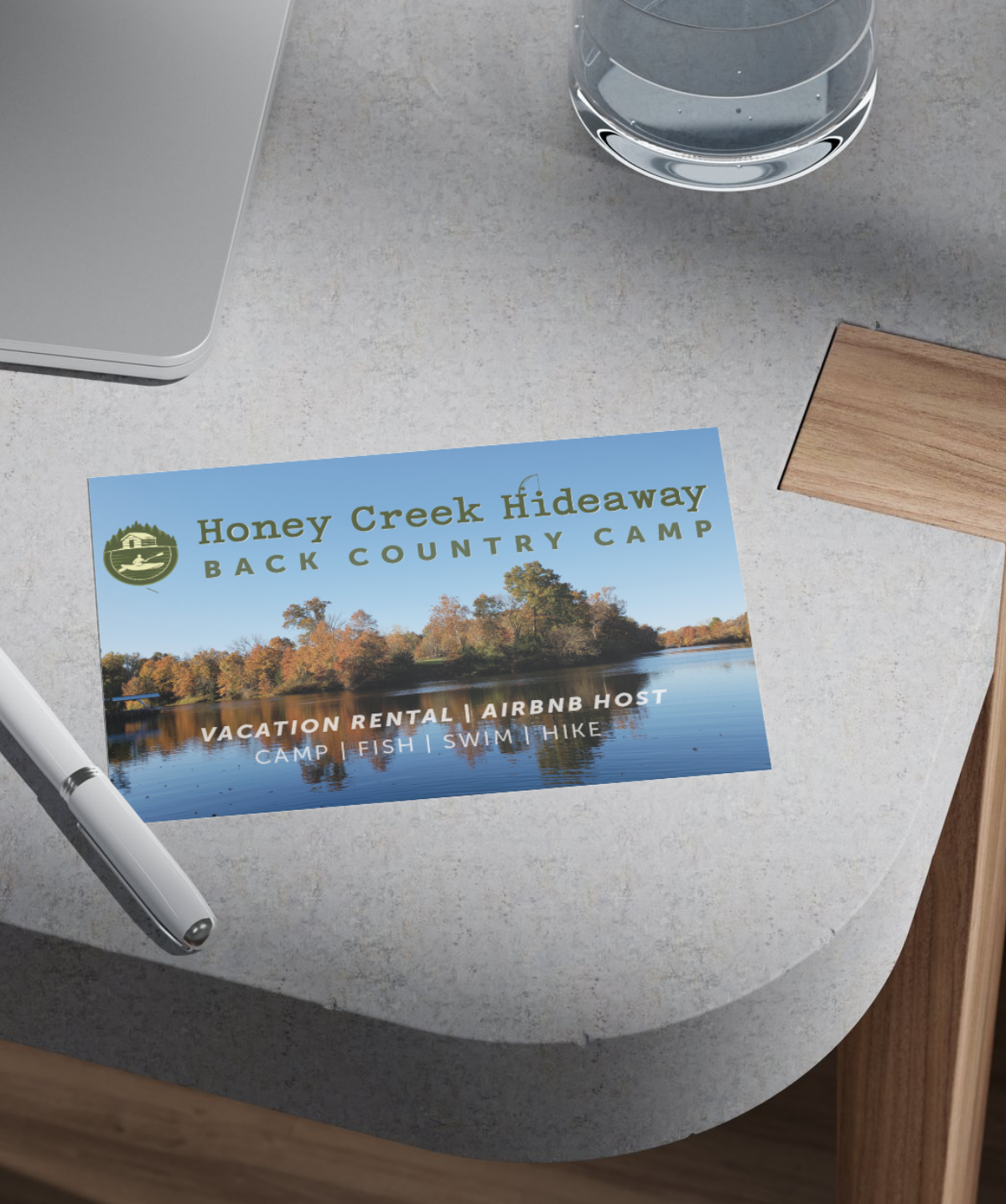 Honey Creek Hideaway came to vivCreate looking for a polished, memorable business card that reflects their brand’s charming, slow-living feel thats rooted in the heart of nature. Our team crafted a visually striking design that captures the essence of their cozy retreat while maintaining professionalism, readability, and brand consistency.